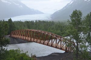 Researchers compared 3D image modeling finished by images captured by a UAV and the traditional LiDAR modelling method. Located in the Chugach National Forest in Alaska, the Placer Trail Bridge is an 85-metre clear-span timber truss pedestrian bridge, only accessible by foot. The structure spans a hazardous watercourse, making inspection of the underside of the bridge from the ground impractical, and the length of the bridge exceeds the effective distance of terrestrial LiDAR sensors, which need to be placed on flat, stable terrain.